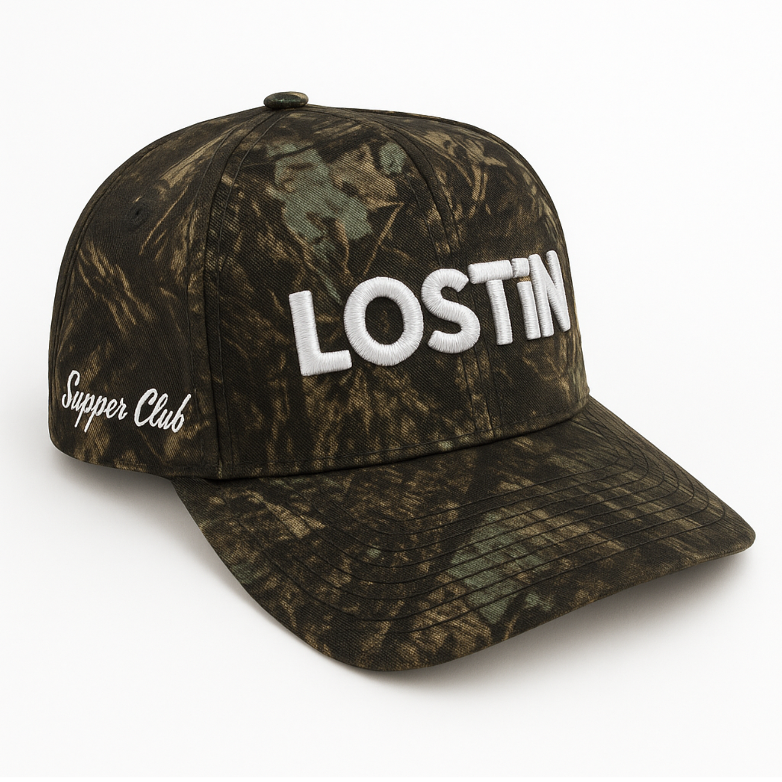 Supper Club Edition - Bespoke camo with bold “Supper Club” embroidery in script, made for late nights, long tables, and the ones who stay for last call.